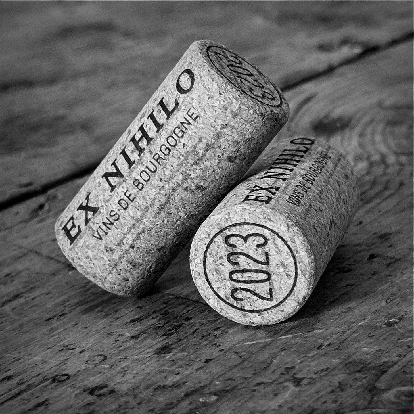 マイクロ・ネゴシアンが増加していることを背景に、現在ブルゴーニュでは複数の新しい生産者で共同のセラーを建てるケースが増えている。ワインの保管だけではなく、プレス機やボトリングマシーンをシェアしている。エクス・ニヒロもピュリニー・モンラッシェに位置する共同セラーで、今をときめくアイシー(Icy Liu)やアドリアン・ブリソー(Hadrien Brissaud)、エイドリアン・ラター(Hadrien Lattard)など10生産者とセラーを共有している。初年度は移住してからできたポマールの友人のセラーで醸造を行ったが、ボトリング前にこの共同セラーが完成したため、ボトリングとエイジングはこのセラーで行った。彼らにとってファーストヴィンテージとなった2023年。「力強くも試練の多いヴィンテージだった」と振り返る。穏やかな冬に始まり、不安定な春、夏は猛暑と涼しさ、嵐が交互に訪れた。シーズンを通して平年を上回る気温を記録し、生育期には深刻な水不足に陥った。それでも、アルバンは近くで丁寧に畑の管理をしていたため、これらのチャレンジングな状況にも対応できたと言う。