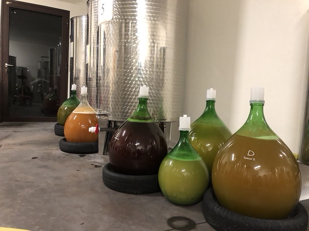 「ブドウ品種よりも、この土地を表現するワインを造りたい。地域の文化を継承していきたい」と語るソニアは、この地域の伝統に倣い、赤・白・ロゼいずれも畑に混植された複数品種を一緒に収穫・仕込む伝統的な混醸スタイルを採用。収穫は10月初旬から11月初旬にかけて、すべて手摘みで行う。醸造ではブドウのエネルギーと繊細さを表現するため、樽は使用せず、ステンレスタンク、セメントタンク、ガラス製のデミジョンなど、中立的でミクロな酸化が可能な容器を使い分けている。ごく少量のSO2を添加するのみで、他には一切の添加物を加えない。