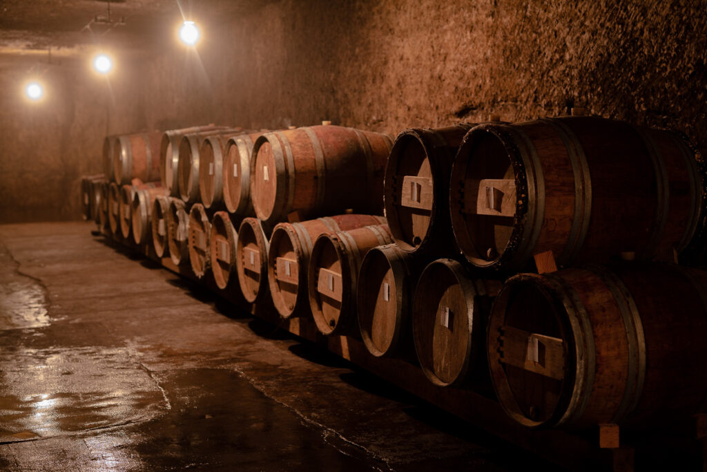 ヴァランタンの、その土地を表現するという考え方はブドウだけにとどまらない。「エコシステムの一部として循環型社会を実現したい」とワイナリーから15 kmに位置するロッシュの森から、フランソワ・フレール社と協力してワインの熟成に使用する樽を造っている。「畑にいないときは、森の中にいる。私はドメーヌの近くの森から木材を選び、それを乾燥させた後、樽職人のもとで焼き入れを行う。使うのはきめ細かい木目のオークのみで、年間の生産はたった10樽。目指しているのは、長年にわたって一貫した品質を保ち、テロワールの力に応じて焼き入れを調整すること。これにより、樽を少なくとも20年間使い続けることができる。なぜなら、前工程から高品質なものづくりをしているという確信があるから。現在、ピノ・ノワールにはブルゴーニュの樽、カベルネ・フランにはシュヴァル・ブランの樽を使用しているが、将来的には全ての樽をこのロッシュの森の木から作りたい」と夢を語る。「偉大なワインを造るには10年かかると言われている。まだその道のりは長いが、目指しているのは、土地と品種の個性を最大限に表現すること。古くからの知恵—観察、忍耐、精密さ—に学びながら進んでいる。土地とヴィンテージの影響を感じられるようにするには、安定した品質の維持も重要だと考えているんだ。」ワインはフィルターをかけず、使用するのは自家製の純粋な火山性SO2以外、添加物を一切使用していない。