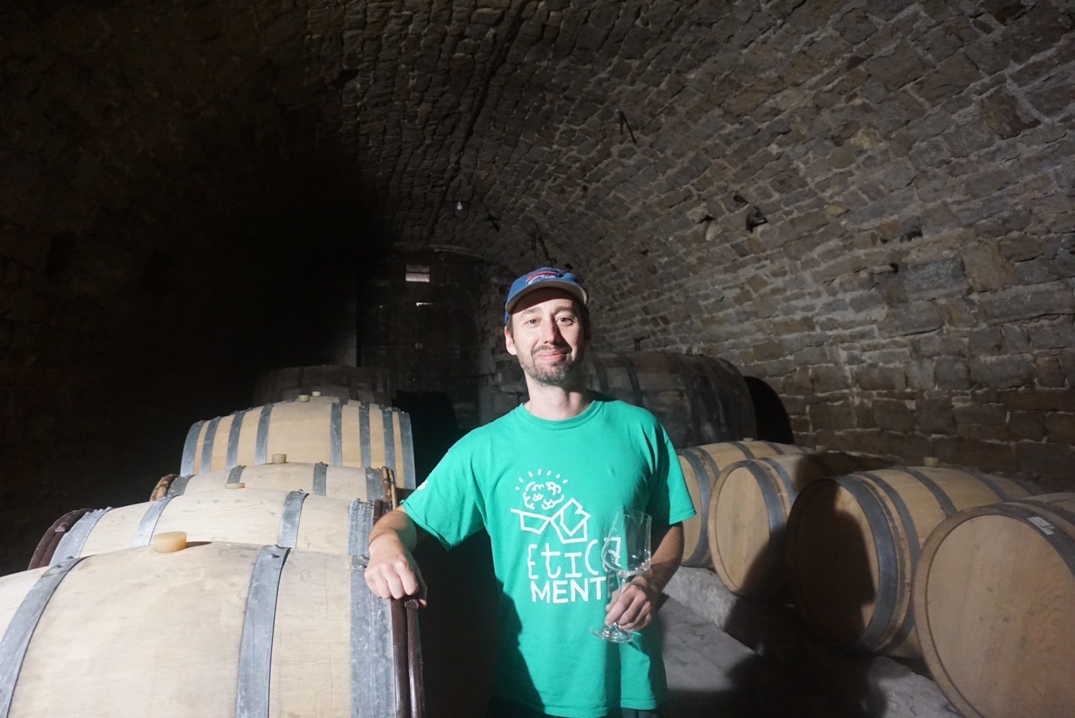 スコットランドで生まれ、幼少期にアイルランドへと移ったフィリップ・ヘダーマンは、青年期をロンドンで過ごし、ミュージシャンとして活動していた。人前で演奏すること、音の重なりに意味を見出すこと、それが彼にとって生きるリズムだった。だがある日、予定されていたコンサートが急遽キャンセルになり、ぽっかりと空いた時間にふと立ち寄ったワインショップで、彼の人生は思いもよらぬ方向へと旋回する。「何気なく手に取ったワイン。グラスの中に、音楽とはまったく違うけれど、どこか似た奥行きを感じた。ひと口ごとに異なる表情を見せるワインに心が震えた。」その瞬間、音楽に注いでいた情熱は、迷いなくワインに向かって流れはじめた。ロンドンでソムリエ資格の勉強を始め、テイスティングの奥深さと理論に没頭するうちに、知識だけでは満足できない自分に気づく。南アフリカで開催されたテイスティング大会への参加が、次の扉を開いた。大会後に訪れた現地のワイナリーで見た、広がるブドウ畑と壮大な自然。「言葉じゃ説明できなかった。ただ、ここに自分がいたいと強く感じた。」ワインを“造る”側に立ちたい。その衝動に突き動かされるように、彼は知人のつてでポルトガルのワイナリーに身を置くことになる。到着初日に簡単に案内されたあと、そこからはいきなり実践だった。経験ゼロ。だが逃げ場はなかった。分からないことは聞き、手を動かしながら覚えていった。「必死だった。でも、自分の手でワインが完成した瞬間の感動は今でも忘れられない。ブドウ栽培、セラーでの作業の大変さを学んだと同時に、ワイン造りの楽しさ、そして自分でもワインが造れたという自信を持つことができた。」ポルトガルで扱っていたのは、土着品種に加え、ピノ・ノワールやリースリングといった冷涼品種。彼の中で、酸の美しさ、軽やかさ、繊細な構造が光るスタイルへの憧れが芽生えていく。