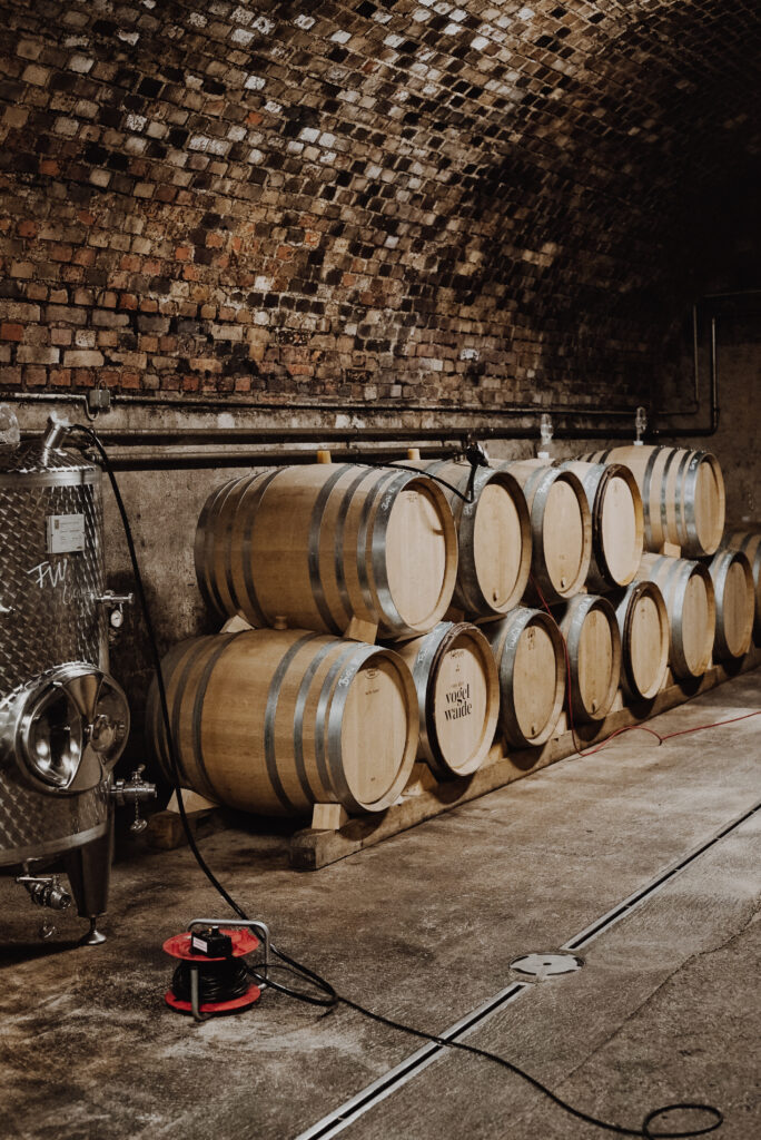 ヴァッハウと言えば、高品質なワインを造ることで世界的に有名な協同組合ドメーヌ・ヴァッハウがある。近年、フォン・デア・フォーゲルヴァイデでは雹や霜の被害で自分たちの畑の収量が大きく減少する年があった。そのため、ビオディナミ農法を取り組んでいる他の農家からブドウを買うこともある。しかし、ドメーヌ・ヴァッハウの農家からのブドウの買い取り価格(特にオーガニックやビオディナミ農法のもの)は高く、彼らが買うにはさらに高い値段が必要になる。それでも、彼らのワインを飲んで感動し、プロジェクトを応援する人からブドウを購入できることもあるという。「新しくワイナリーを始めるということは、本当に費用と手間がかかる。色々な投資が必要なんだ。それでも僕たちは幸運にも人に恵まれた。応援してくれる人、サポートしてくれる人、一緒に情熱をかけてくれる人たちがいた。畑もなしにゼロからワイナリーを始めるには相当な”理想”が必要なんだ。」その言葉を体現するかのように、彼らのワインからは新しいワイナリー特有の“焦り”が感じられない。高品質なワインを造ることを最優先に、しっかりと適切な熟成期間を確保している。「熟成期間が長ければ当然キャッシュフローが悪くなる。それでも僕たちは自分たちの理想のワインを造りたい。だから、そこで妥協はできない。その分、ラベルも全て手で貼るし、手作業で蝋をつける。」